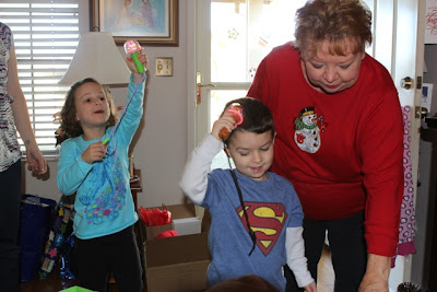 We celebrated Christmas at Grandma & Grandpa's House with Anna & Omar. Auntie Ann, Joan and Pete came over for a visit, too. We opened a lot of presents, rode our bikes around the block, ate some yummy food and enjoyed the warm sun.