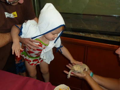 We had a fun day at our hotel today. We hung out at the pool, visited the resort's lizard mascot, watched a cowboy singer and made s'mores!